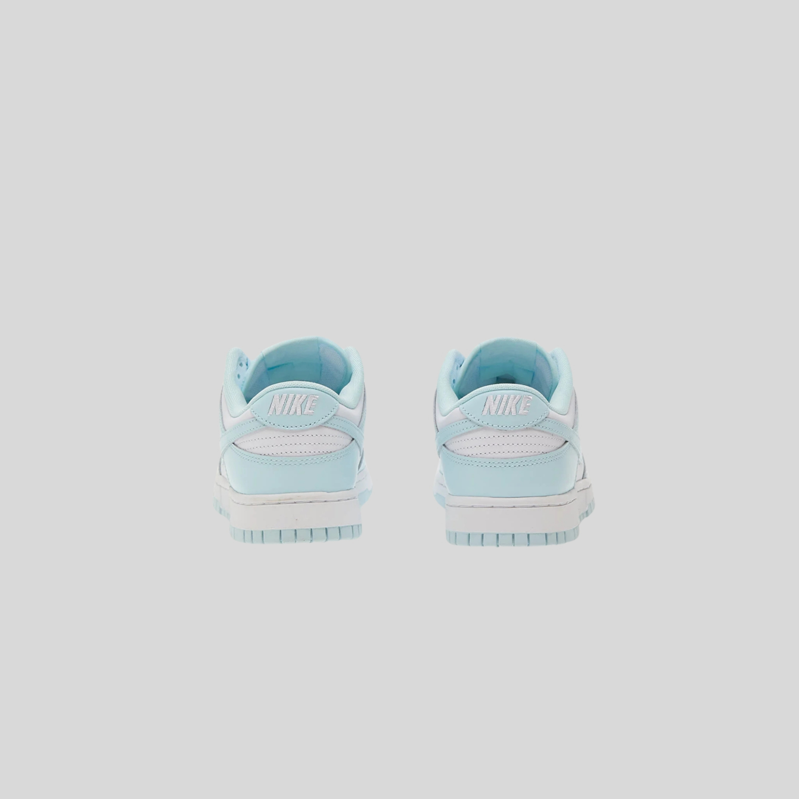 Nike Dunk Low "Glacier" este o versiune modernă a clasicului Dunk Low, care se evidențiază printr-o schemă de culori inspirată de gheață și nuanțele reci ale peisajelor arctice. Partea superioară a pantofului este realizată din piele de calitate premium, combinând tonuri de alb curat cu accente de albastru pal și gri deschis, evocând atmosfera clară și pură a unui ghețar.